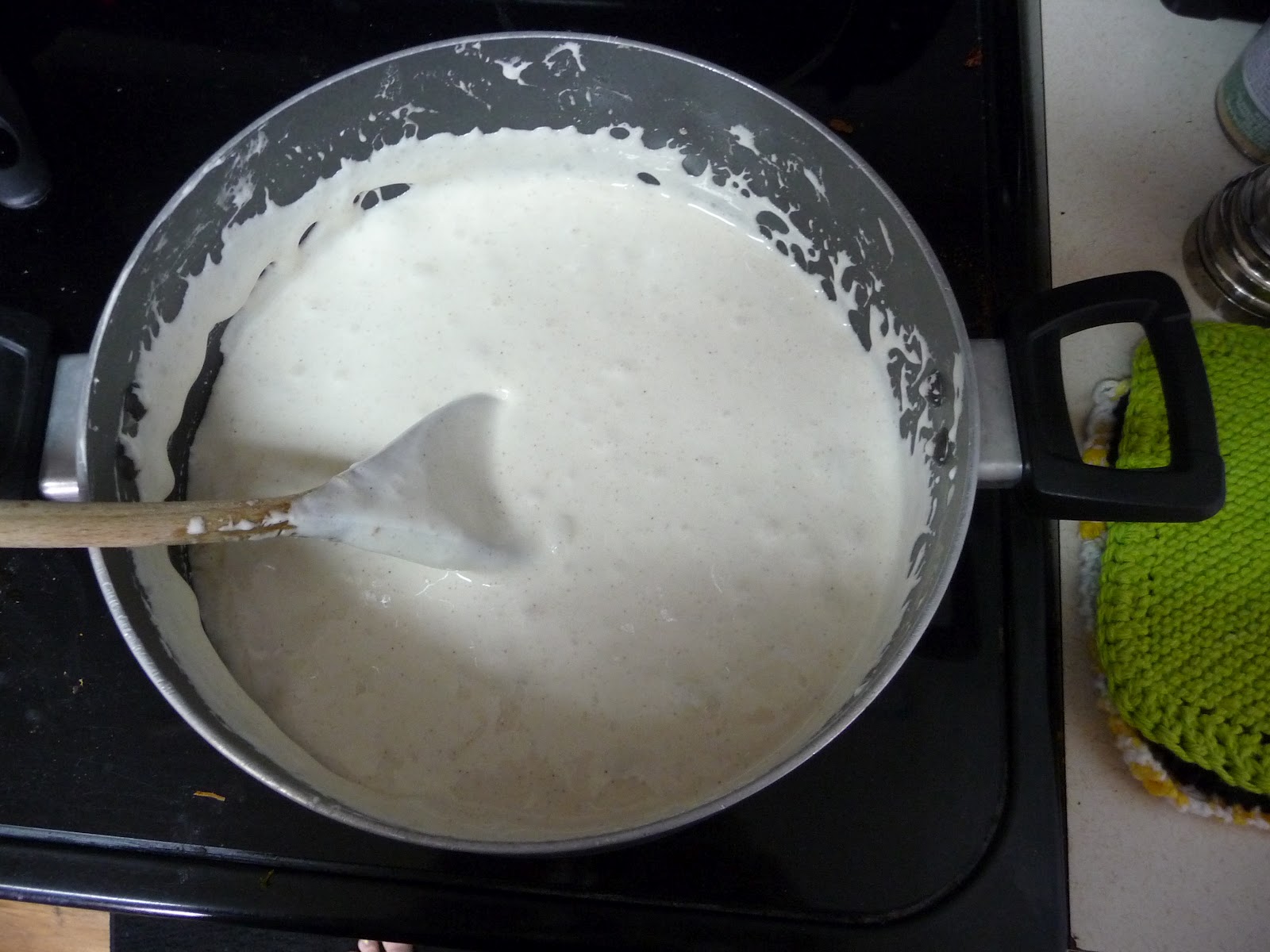 2. Remove from heat and add the cinnamon and vanilla to mixture. It should look like this...